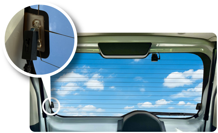 当社で製造した自動車リアガラス用の熱線用ハーネスや端子部品は国内大手自動車メーカーの車両に広く採用されています。