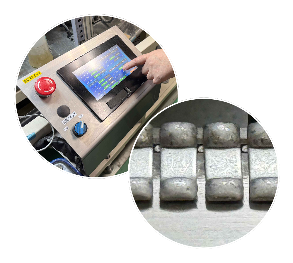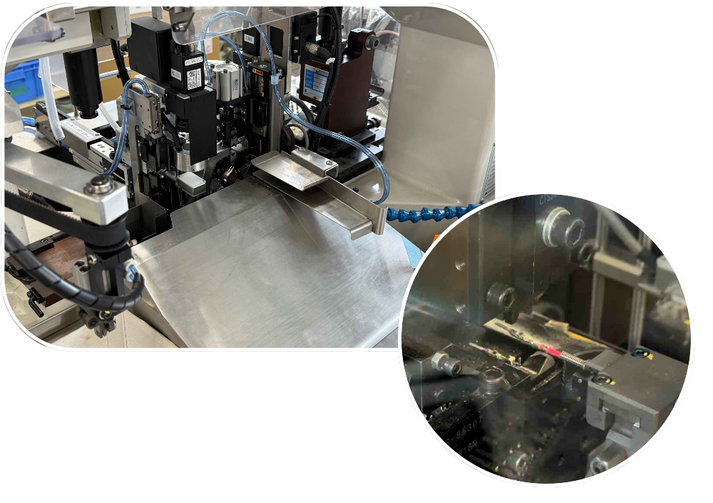- 自動機:端子の供給からはんだ盛りまで自動機による自動生産を行います。