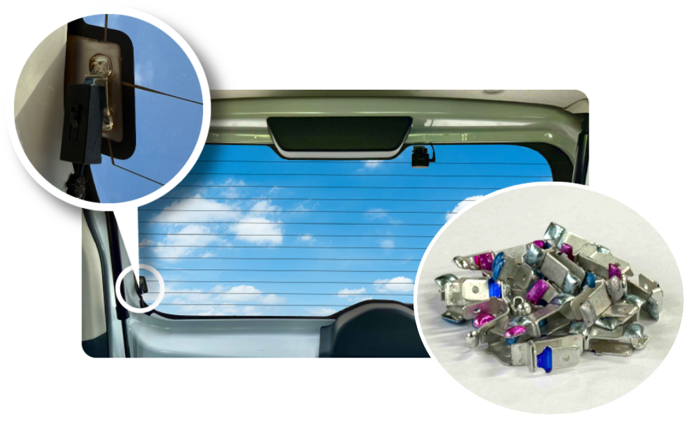 当社は、自動車のガラスに組み込まれる電装部品の製造・加工に特化した企業です。